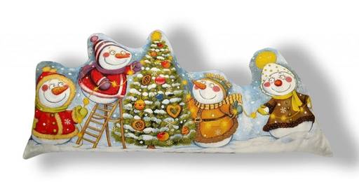 Снеговики у елки- гобеленовая подушка