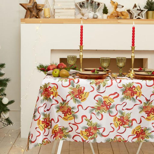 Скатерть новогодняя Доляна "Новогодние колокольчики" 145*300 +/- 2 см, 100% п/э