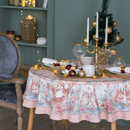 Скатерть новогодняя Этель Pink magic d=220см +/-3см с ГМВО, 100% хлопок, саржа 190 гр/м2