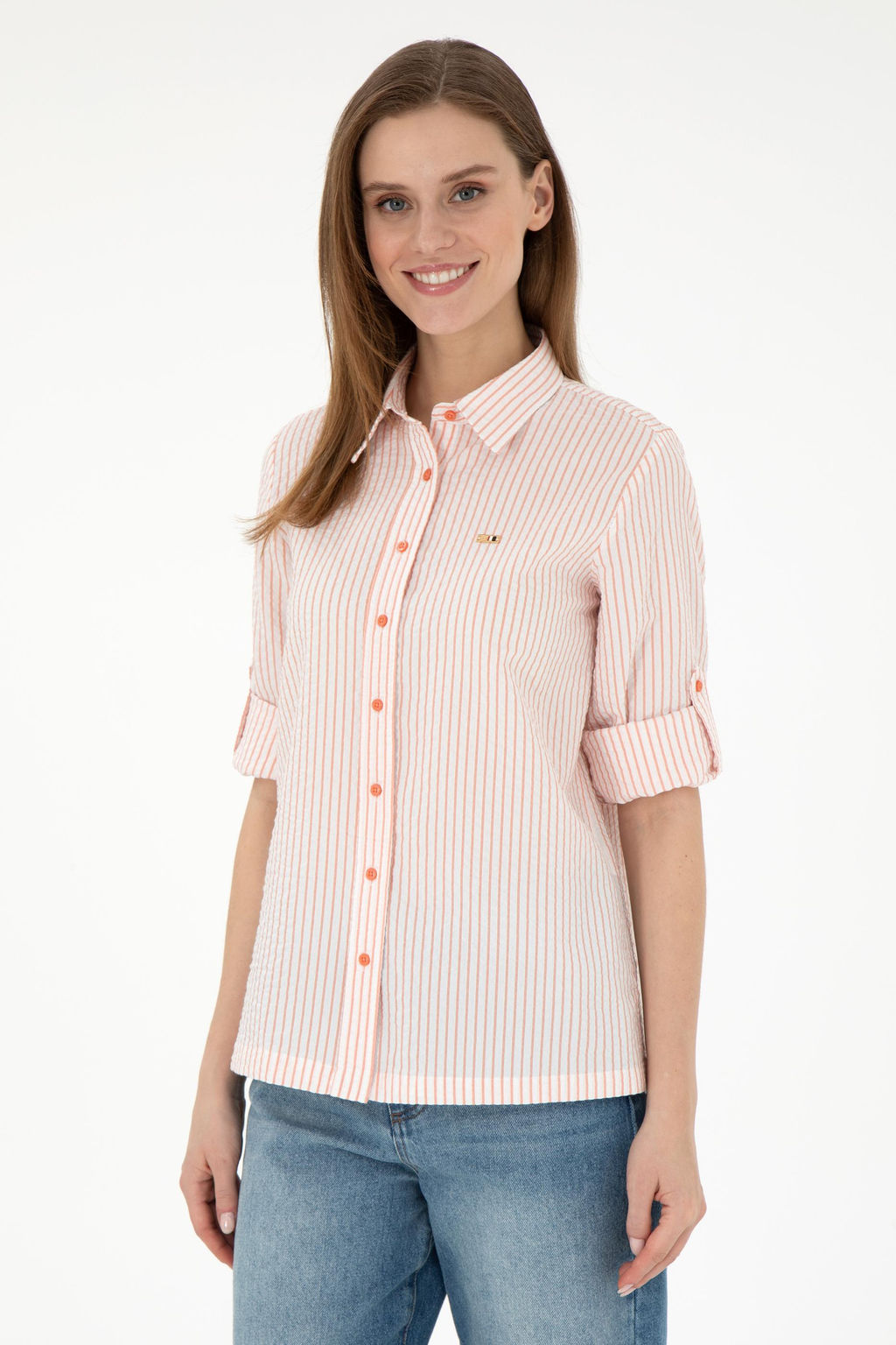 Женская рубашка лососевого цвета с длинным рукавом Неожиданная скидка в корзине