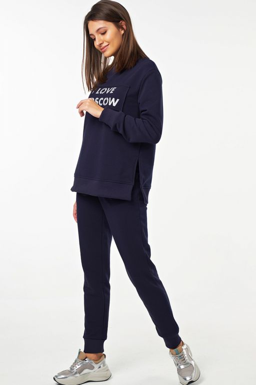 Костюм трикотажный свободный с брюками из хлопка темно-синий