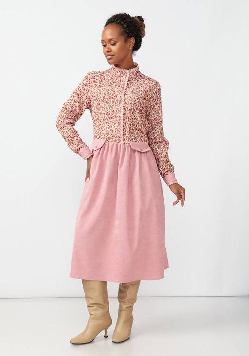 Артикул: Платье из комбинированной вельветовой ткани, Брусничный