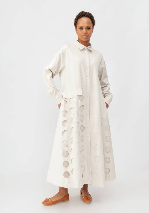 Платье-рубашка с перфорацией бежевый