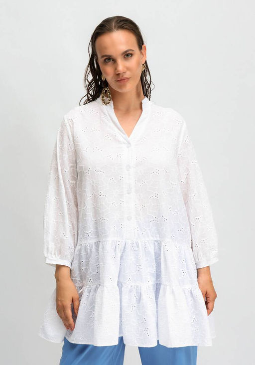 Артикул: Туника из шитья с ярусами на пуговицах белый