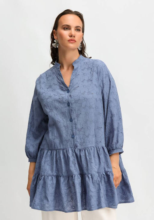 Туника из шитья с ярусами на пуговицах джинсовый
