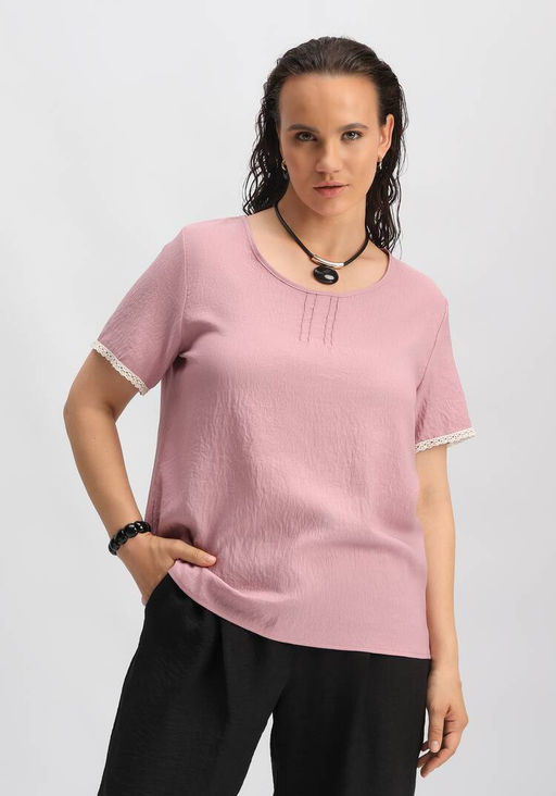 Артикул: Футболка с кружевными вставками на рукавах розовый
