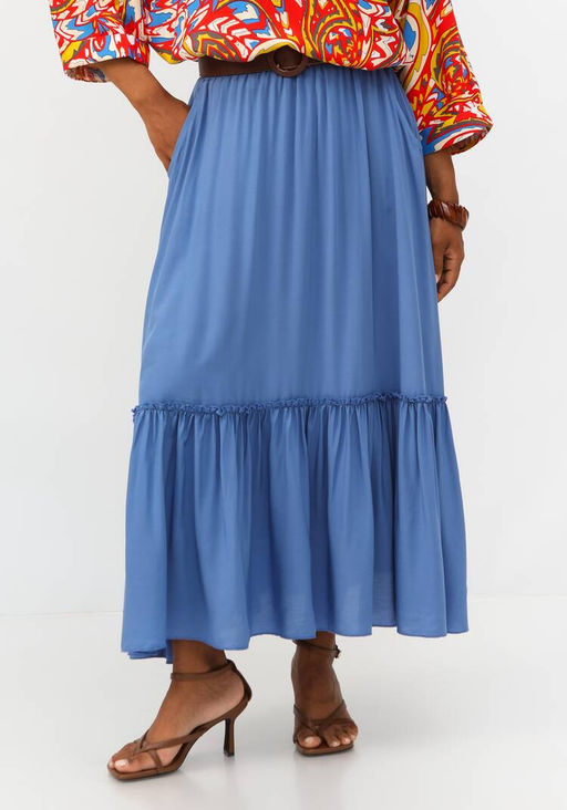 Юбка на эластичной ленте с ярусами голубой