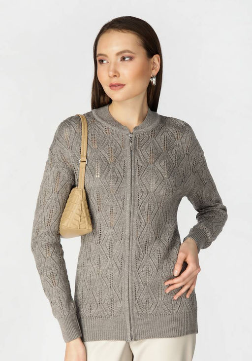 Артикул: Бомбер женский на молнии с ажурным рисунком капучино
