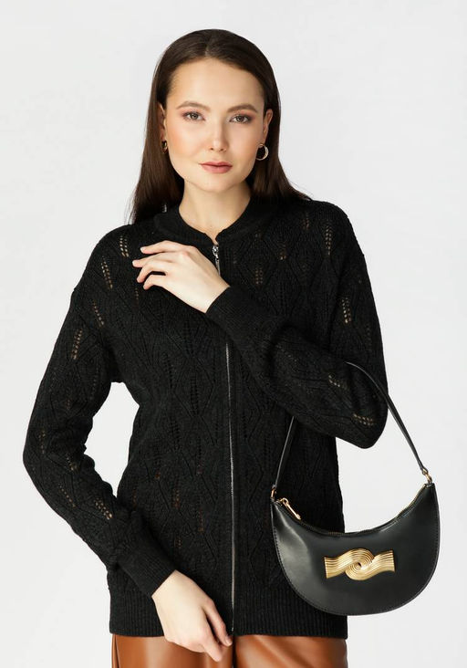 Артикул: Бомбер женский на молнии с ажурным рисунком темно-серый