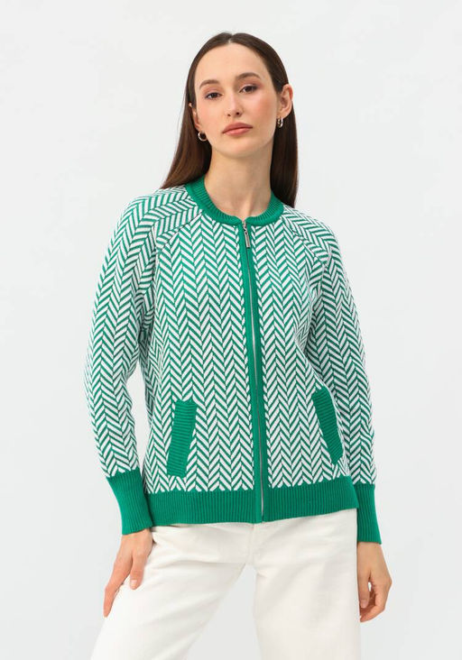 Артикул: Бомбер женский на молнии с широкими манжетами зеленый