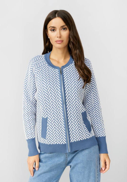 Артикул: Бомбер женский на молнии с широкими манжетами серо-голубой