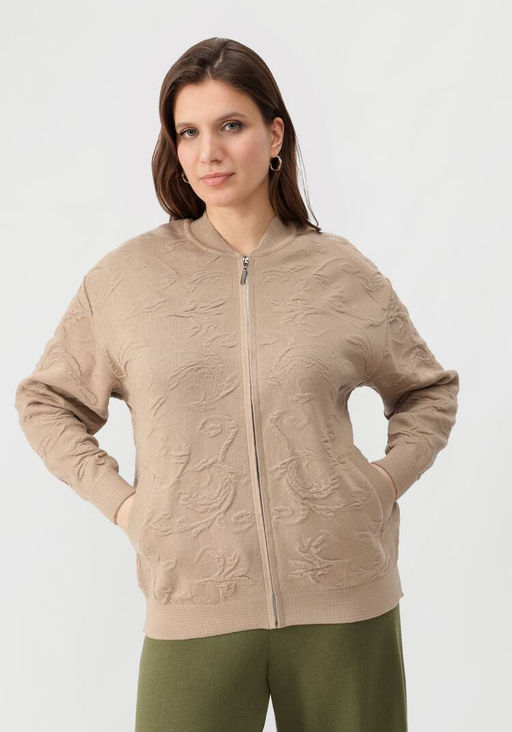 Бомбер с фактурным 3D рисунком песочный