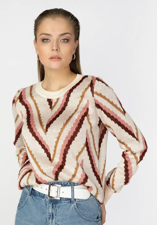 Артикул: Джемпер женский в диагональные полосы молочный