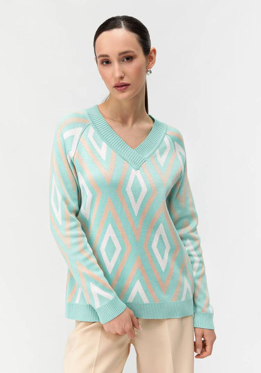 Артикул: Джемпер женский с рисунком ромбами мятный