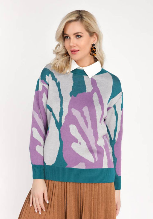 Артикул: Джемпер прямого кроя с абстрактным рисунком сиреневый