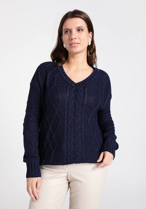 Артикул: Джемпер с V образным вырезом и косами темно-синий