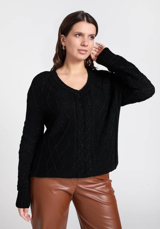Артикул: Джемпер с V образным вырезом и косами черный