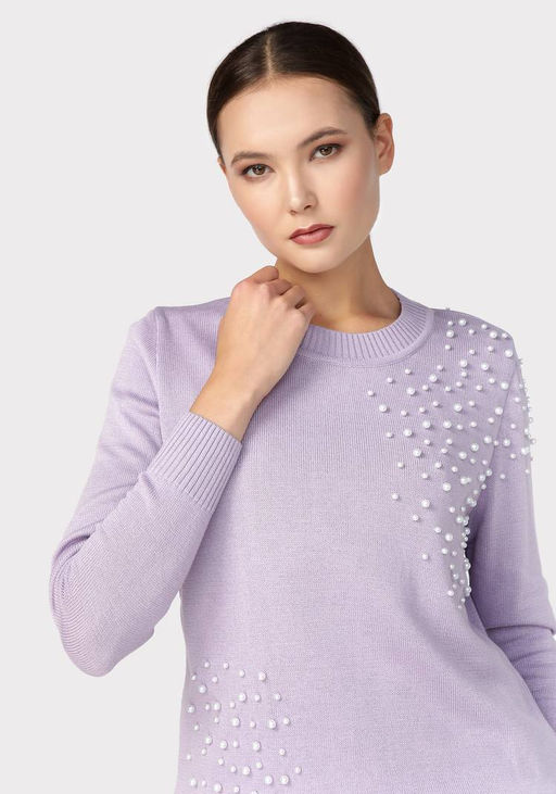 Артикул: Джемпер с бусинами по плечу и низу изделия сиреневый