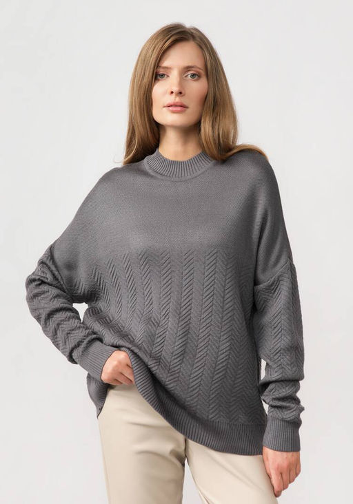 Артикул: Джемпер с горлом и со спущенным плечом графитовый