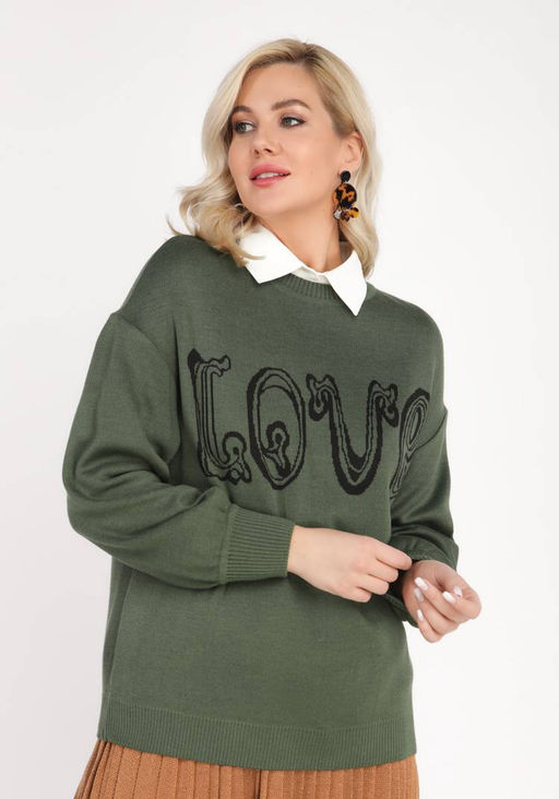 Артикул: Джемпер с жаккардовой надписью оливковый