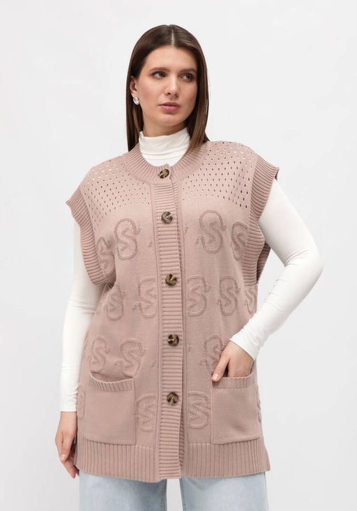 Артикул: Жилет ажурный с карманами жемчужно-розовый