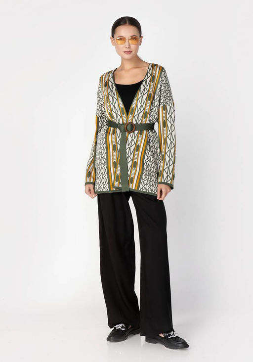 Артикул: Кардиган женский под пояс оливковый