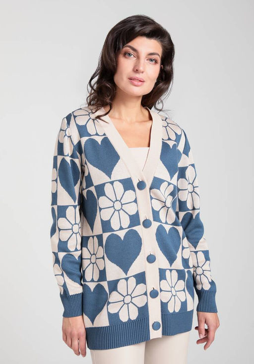 Артикул: Кардиган прямой на пуговицах с рисунком индиго