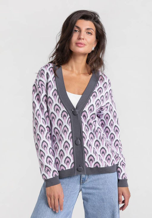 Кардиган с рисунком по стану и рукавам белый