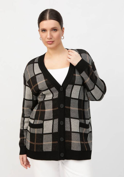 Артикул: Кардиган с рисунком шахматная клетка черный