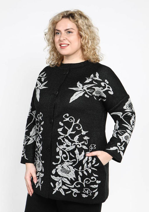 Артикул: Кардиган с цветочным принтом на пуговицах черный
