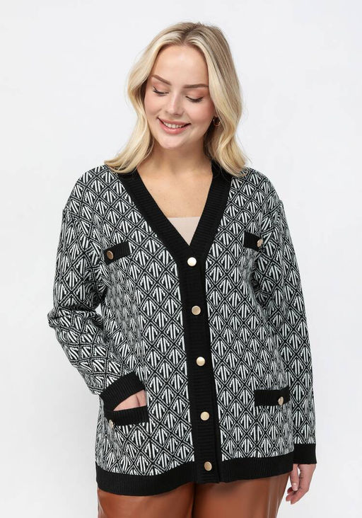 Артикул: Кардиган удлиненный с графичным орнаментом черный