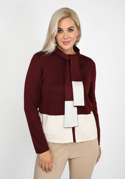 Артикул: Пиджак с карманами и шарфом в комплекте бордовый