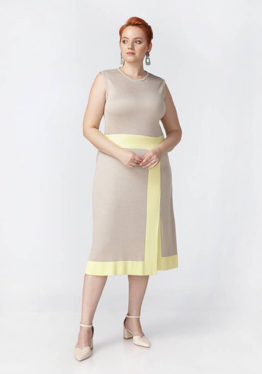 Артикул: Платье однотонное с контрастными вставками светло-бежевый