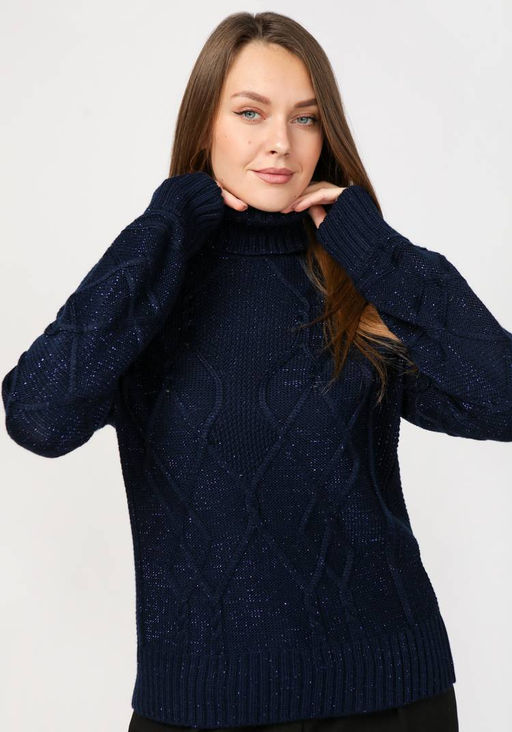 Артикул: Свитер женский в технике араны с метанитью синий