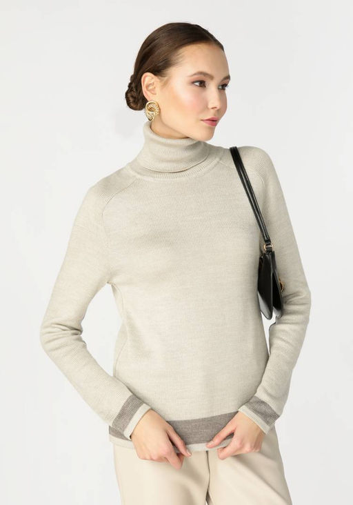 Свитер с контрастной отделкой по низу изделия жемчужный