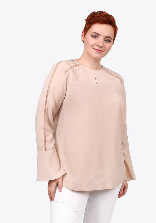 Артикул: Блуза прямого силуэта с гипюровыми вставками бежевый