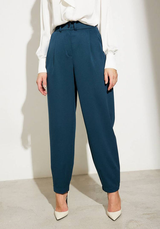 Брюки из костюмной ткани зауженные к низу изумрудный
