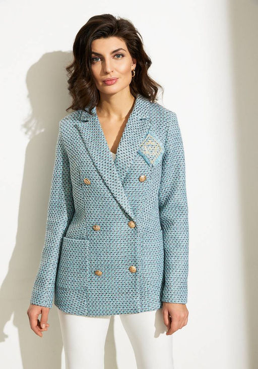 Артикул: Жакет с клубной вышивкой серо-голубой