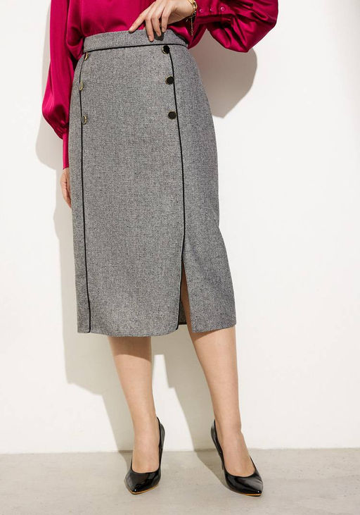 Артикул: Юбка с отделкой кантом и пуговицами серый