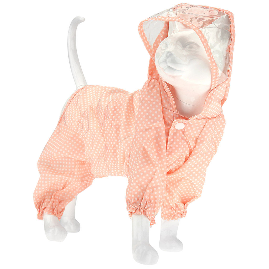 "Пэт тойс (Pet toys)" Одежда для собаки "Комбинезон" "Горошек" с капюшоном, прозрачный ПВХ козырек, на кнопках р-р L, длина спинки 30см/обхват груди 42см/обхват шеи 36см, цвет-персиковый, плащевка (Китай)