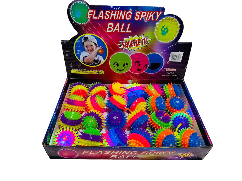 Мякиш FLASHING SPIKY BALL антистресс мяч разноцветный с колючками 24 шт. в уп (арт. 5973-17)