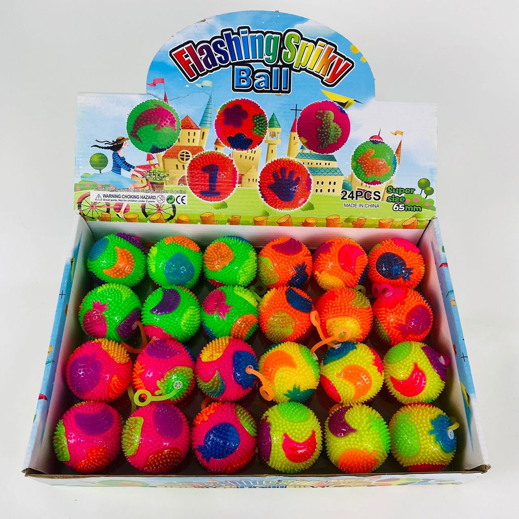 Мякиш Мячики на резинках Flashing Spiky Ball Фрукты 24 шт. в уп (65 mm)