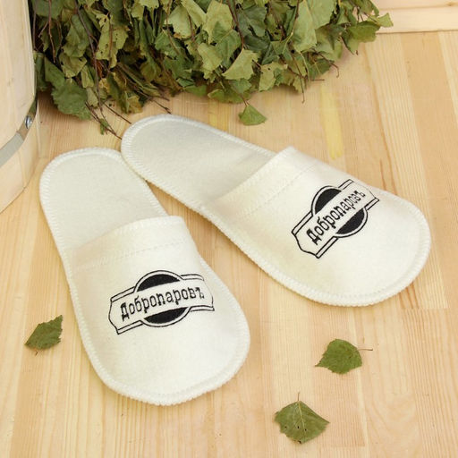 Тапочки для бани белые с черной с вышивкой "ДОБРОПАРОВЪ"