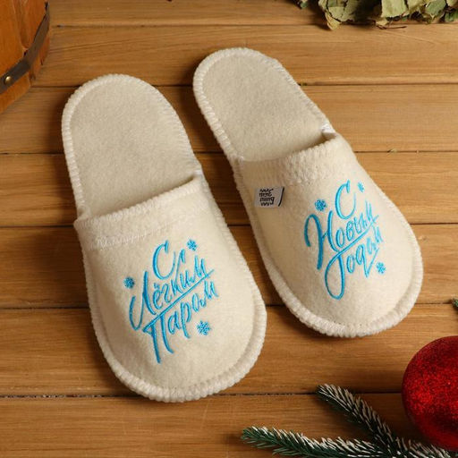 Тапочки с вышивкой "С новым годом! С легким паром!"