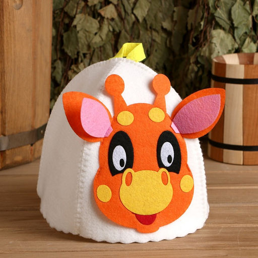 Шапка для бани с детской аппликацией "Жирафик" войлок