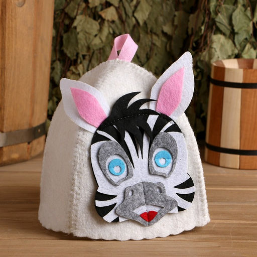 Шапка для бани с детской аппликацией "Зеброчка" войлок