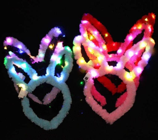 Ободки светящиеся меховые Заячьи ушки (10 шт в уп)