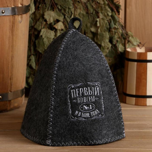Шапка для бани с вышивкой "Первый во всем и в бане тоже"