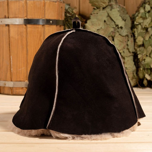 Шапка для бани из овчины "Премиум" прямострочный шов, коричневый