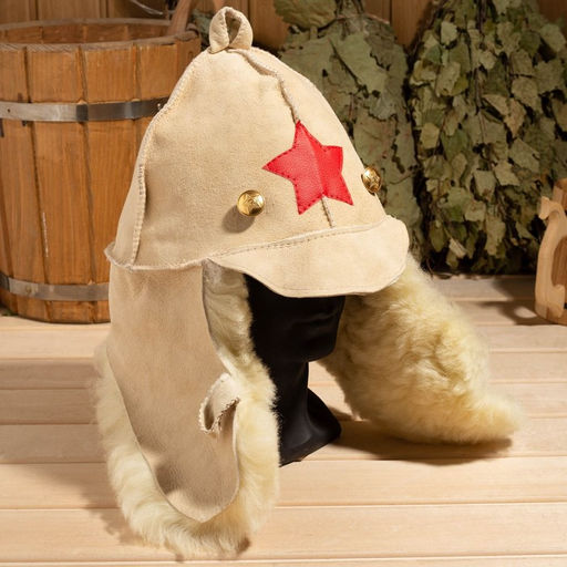 Шапка для бани из овчины "Будёновка" скорняжный шов, бежевый